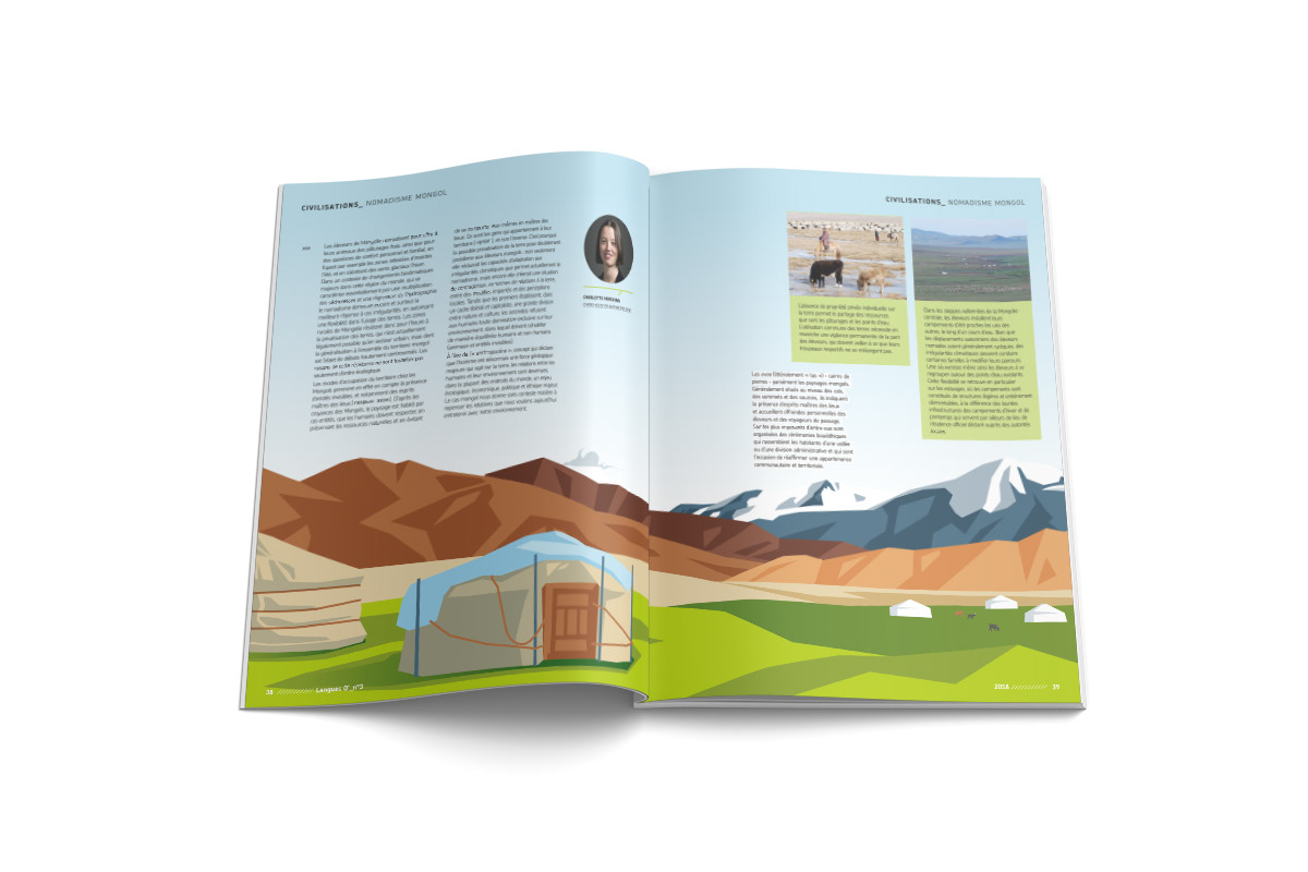 Illustrations pour Langues O', le magazine de l'INALCO réalisé par l'agence LINER Communication.